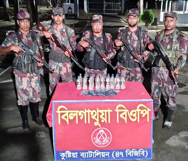 কুষ্টিয়ায় ধারাবাহিক মাদক ও চোরাচালান বিরোধী অভিযান চালিয়ে আসামীসহ ২৩০০০ পিস চকলেট বাজি, ১টি মোটরসাইকেল এবং মালিকবিহীন অবস্থায় ১৮ বোতল