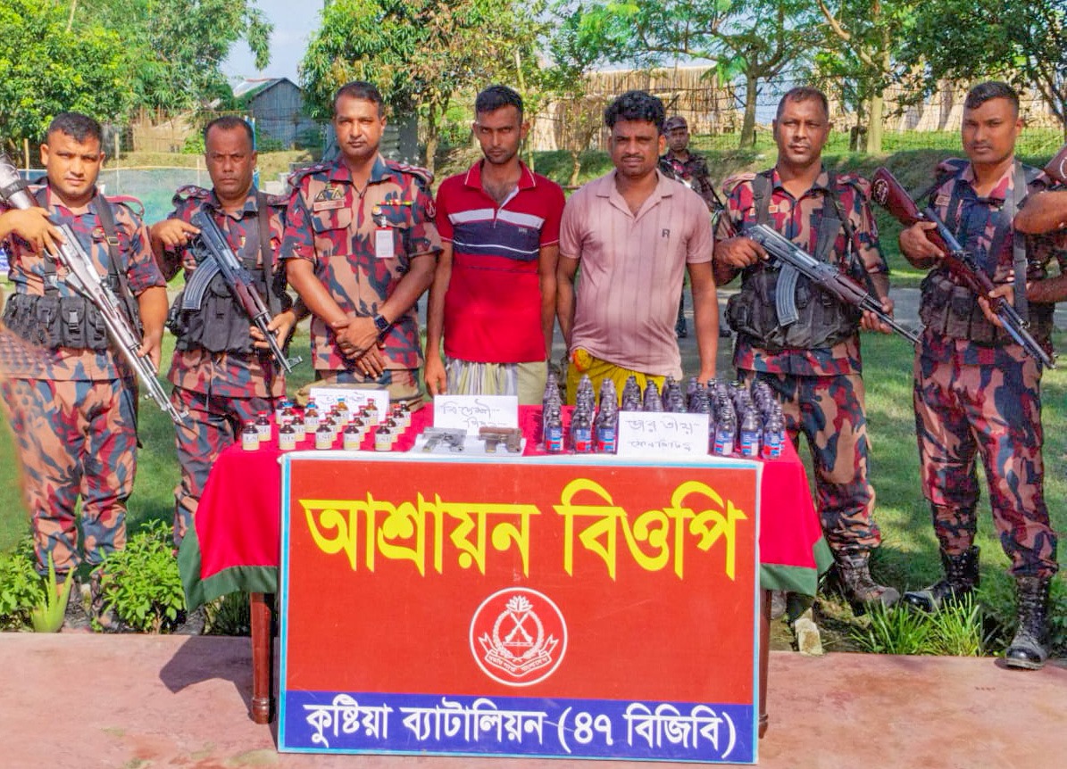 কুষ্টিয়ায় অস্ত্র, মাদক বিরোধী অভিযান চালিয়ে ২ জনকে আটক করেছে বর্ডার গার্ড বাংলাদেশ (৪৭বিজিবি) কুষ্টিয়া ব্যাটালিয়ন। এ সময় প্রায় ১০