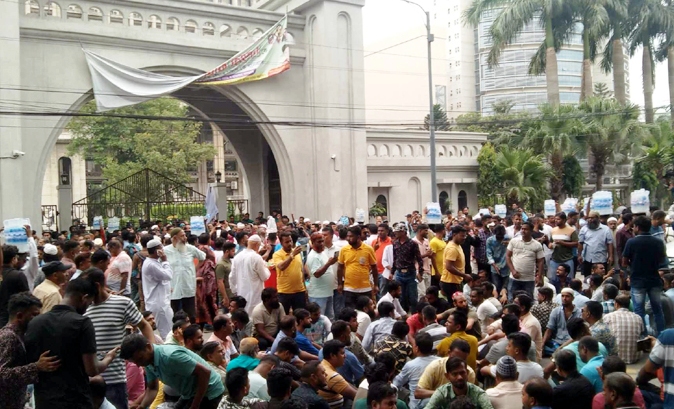নগরভবনের প্রধান ফটক আটকে বিক্ষোভ