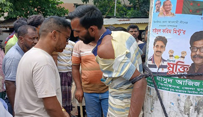 ঝিনাইদহে চুরির অপবাদে যুবককে বিদ্যুতিক খুঁটির সাথে বেঁধে নির্যাতন