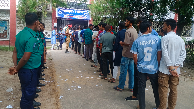 দীর্ঘ প্রতিক্ষাপর পর উৎসবমুখর পরিবেশে সকাল ৯ টা থেকে চলছে রাজশাহী বিশ্ববিদ্যালয় কেন্দ্রীয় ছাত্র সংসদ (রাকসু), হল সংসদ ও সিনেট