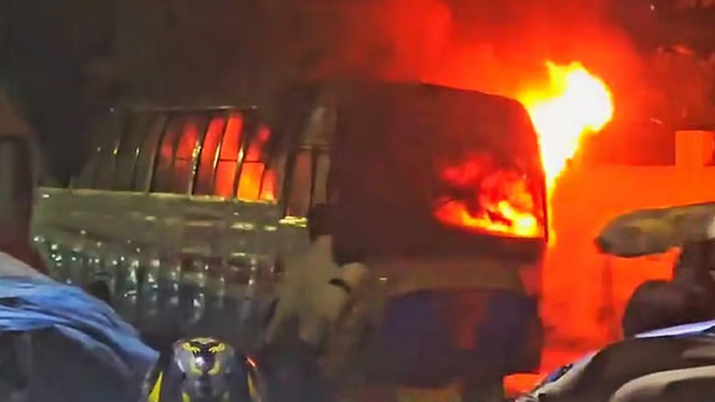 রাজধানীতে আবারও বাসে আগুন