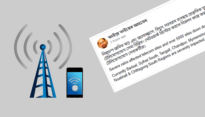 বিদ্যুৎ সরবরাহব্যবস্থায় প্রাকৃতিক দুর্যোগের প্রভাবে সারা দেশে টেলিযোগাযোগসেবা বিঘ্নিত হচ্ছে। বিদ্যুৎ বিভ্রাটের ফলে পাঁচ হাজারের বেশি বেজ ট্রান্সসিভার স্টেশন (বিটিএস)